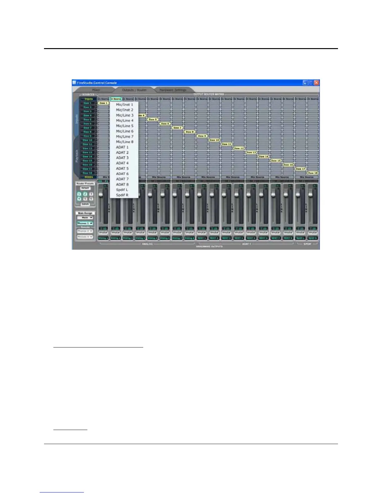 full control of the physical outputs of your FireStudio. The Matrix Router allows you to create custom