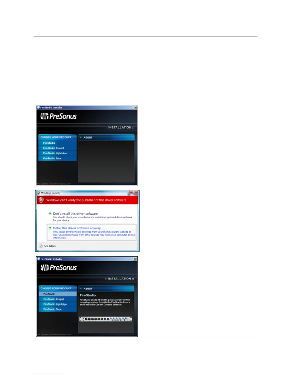 After inserting the Installation CD into your CD-ROM drive, the FireStudio installer will take you through