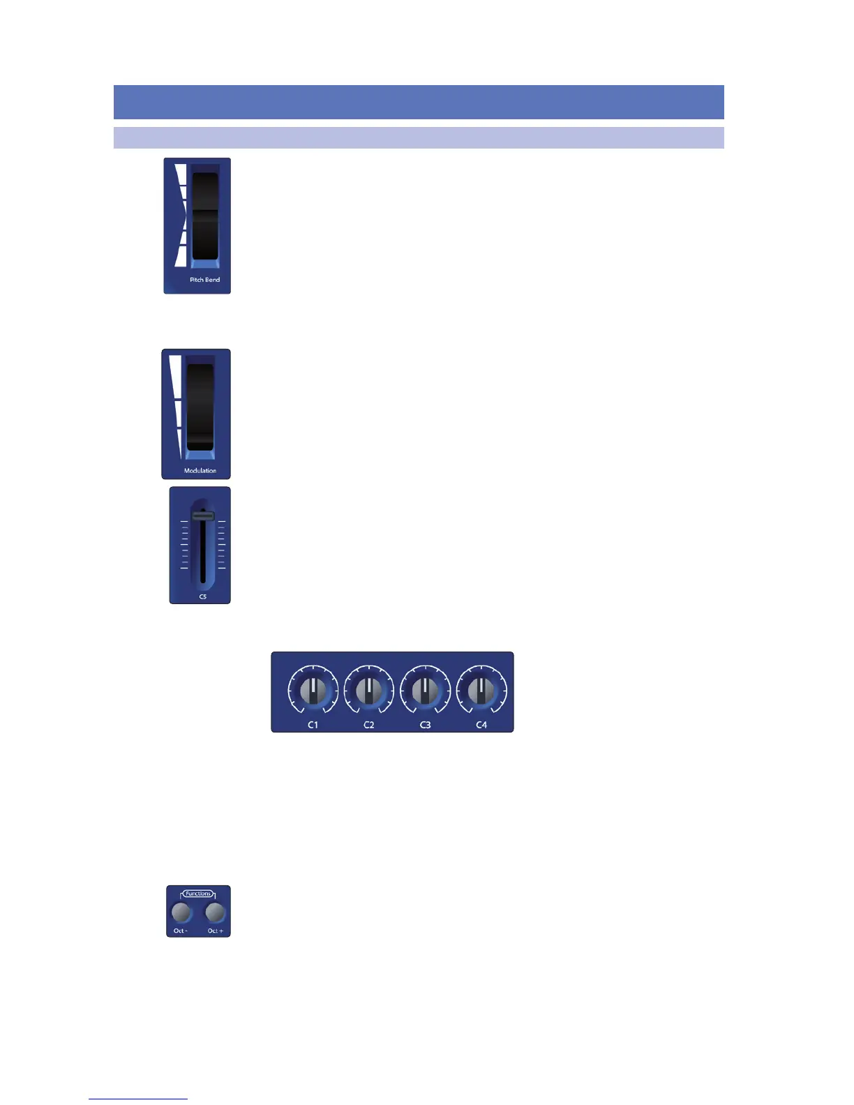 • Control knob C1: MIDI CC# 74, Brightness
