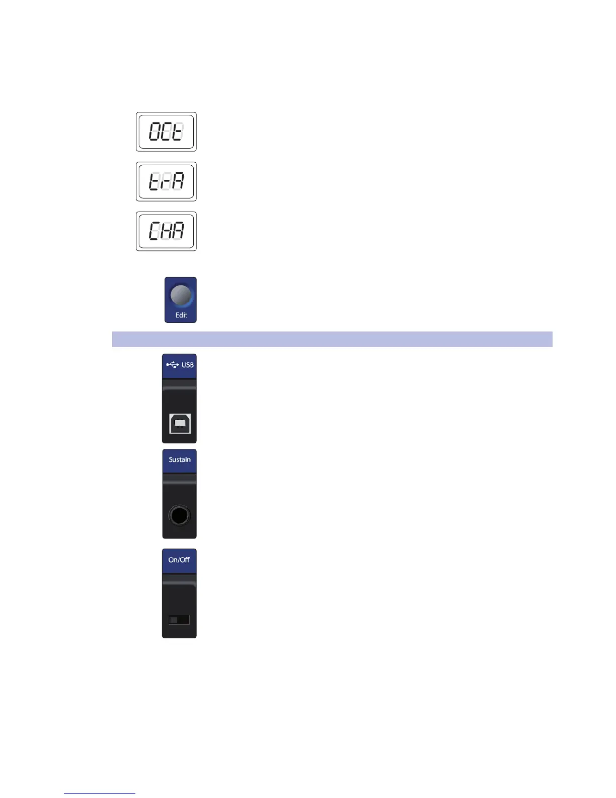 • MIDI Channel (CHA): When this function is selected, the Octave buttons will