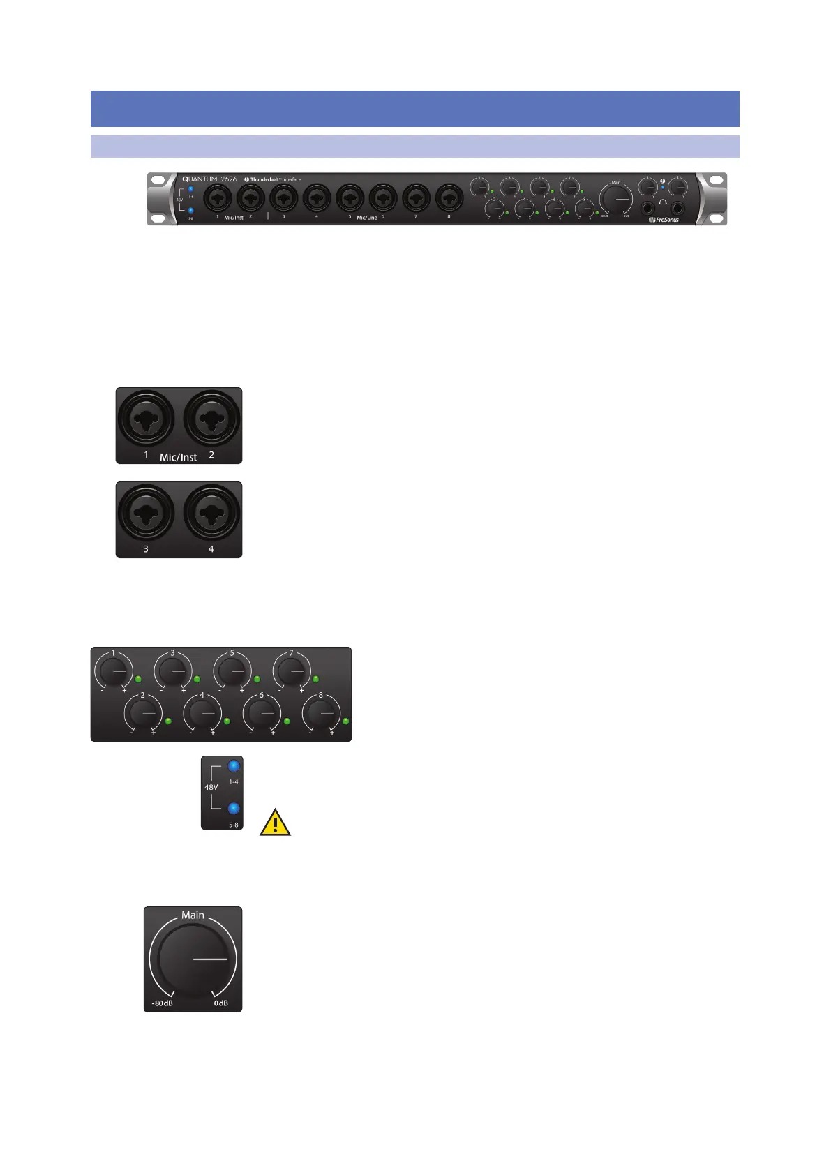 • 48V: The Quantum 2626 interfaces provide 48V phantom power