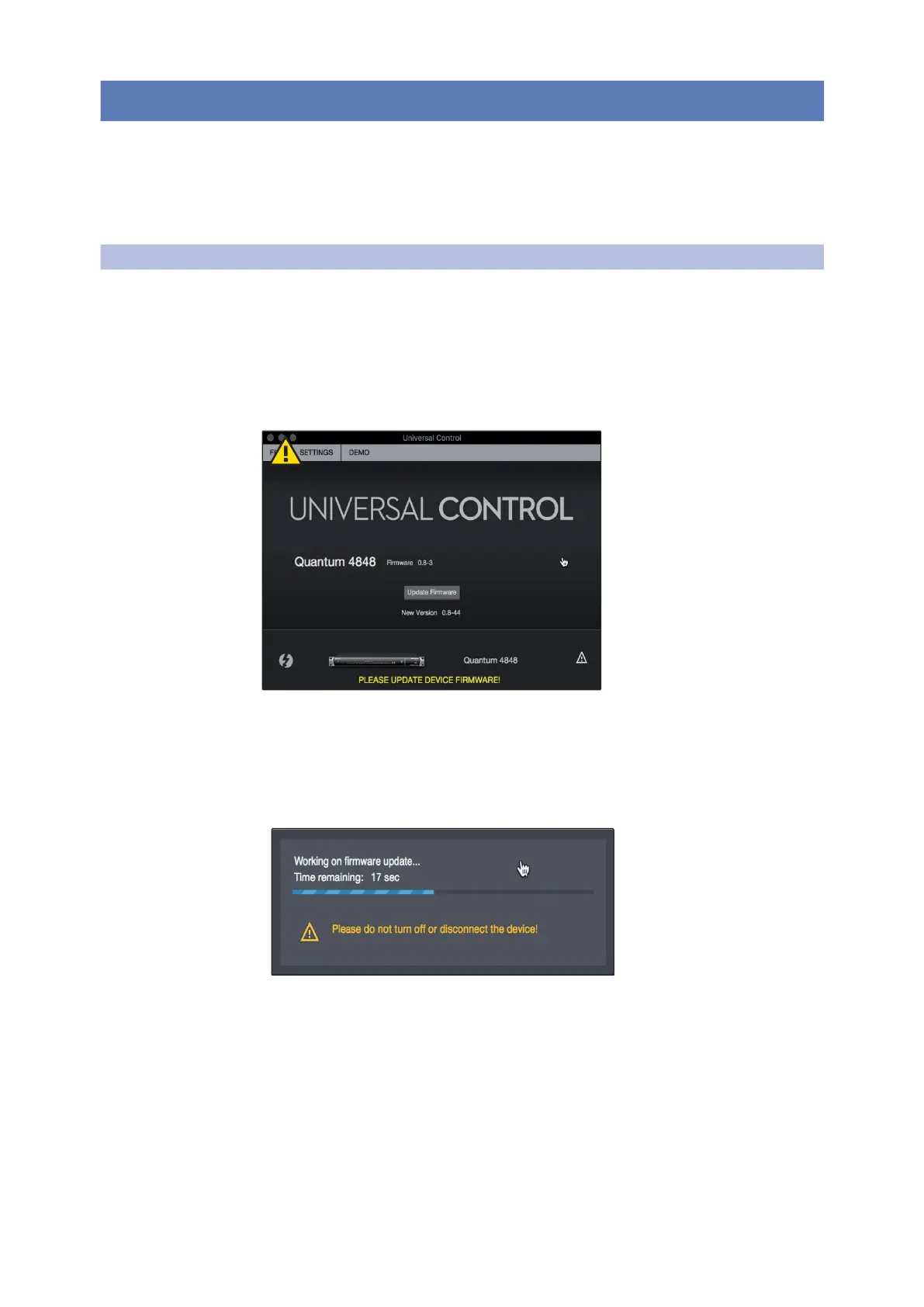 Warning: Do not power off or disconnect your Quantum 4848 during the