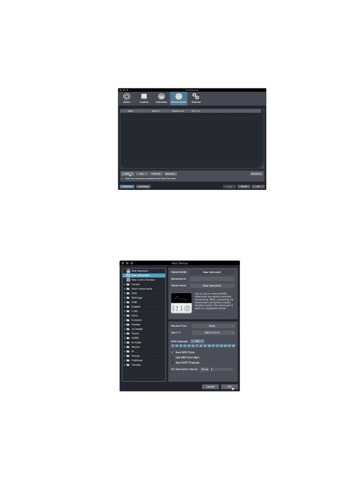 选择 "New Instrument"。这时,你可以通过输入制造商和设备