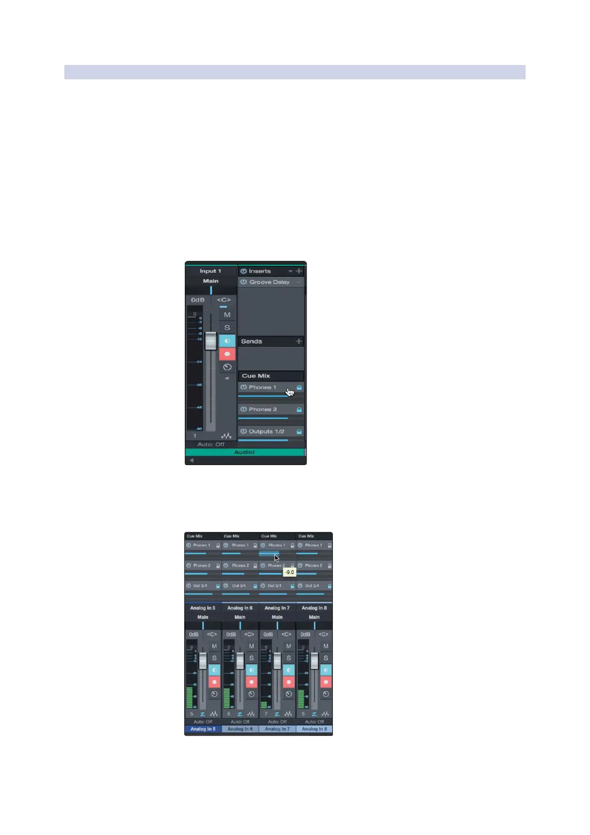 在” Small Console” 视图中,Cue Mix对象出现在扩展通道的最左边一