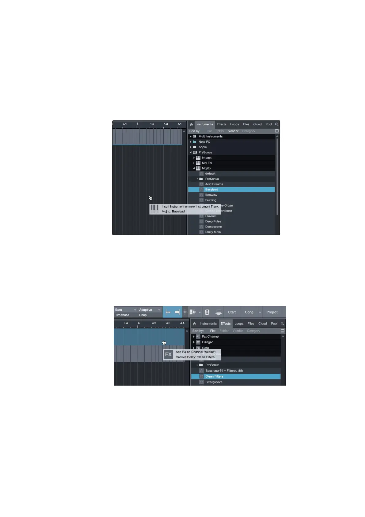 instrument browser and drag it into the Arrange view. Studio One Artist will