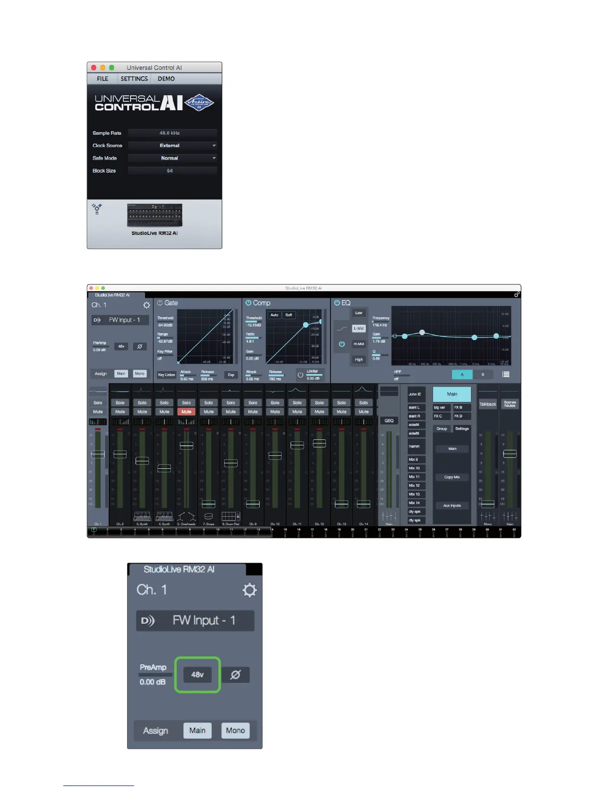 Channel +48V button.