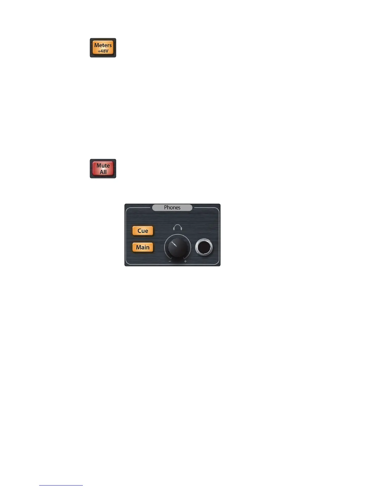 Meters/+48V button: Switches the front-panel meter LEDs between displaying