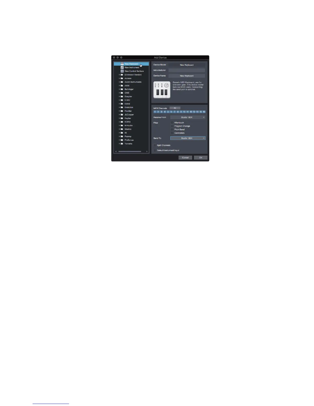 keyboard. For most purposes, you should select all MIDI channels. If you are