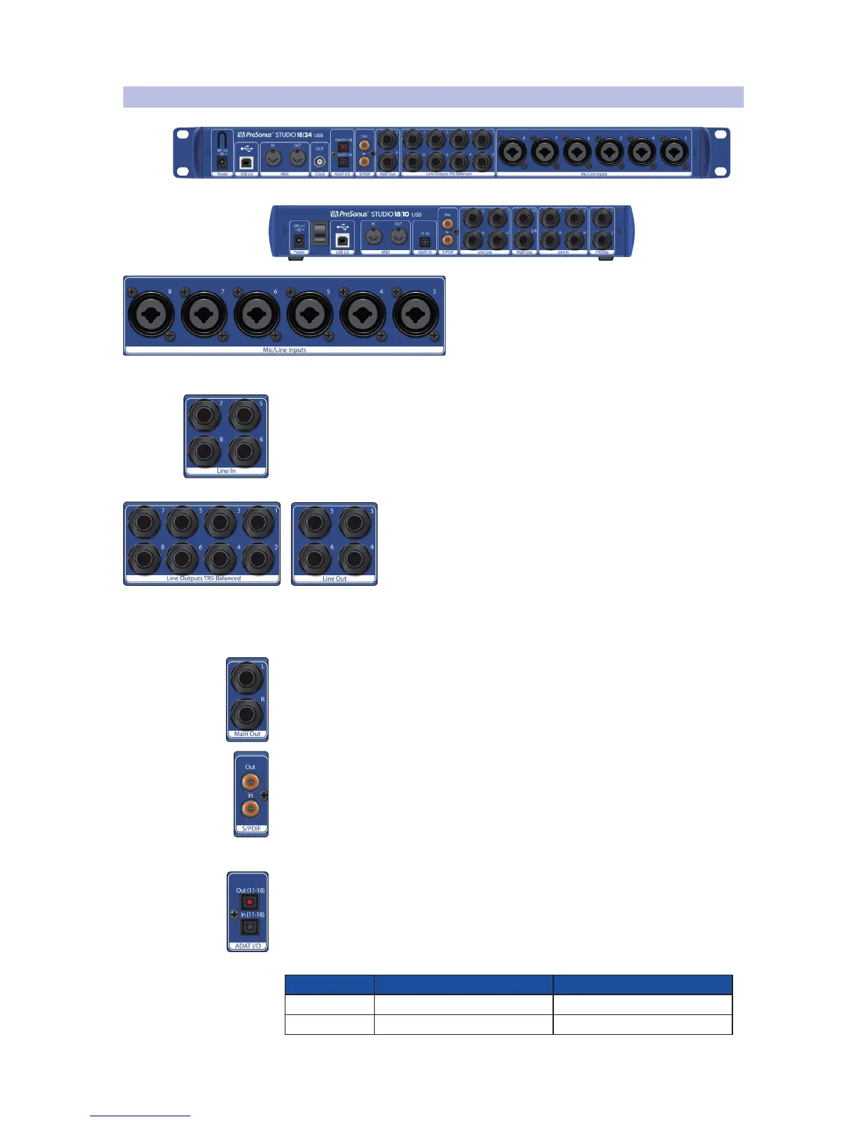 Line Inputs (Studio 1810 only). Use these ¼-inch TRS inputs with line-level devices.