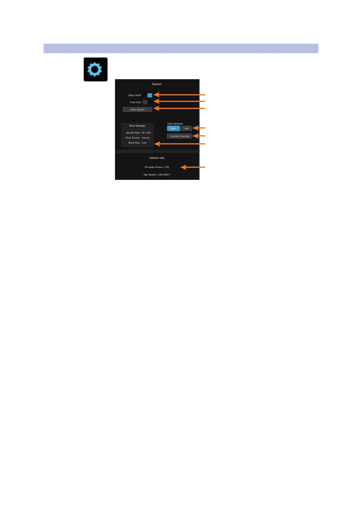 6. Driver Settings. Displays the current driver settings for your Studio-series