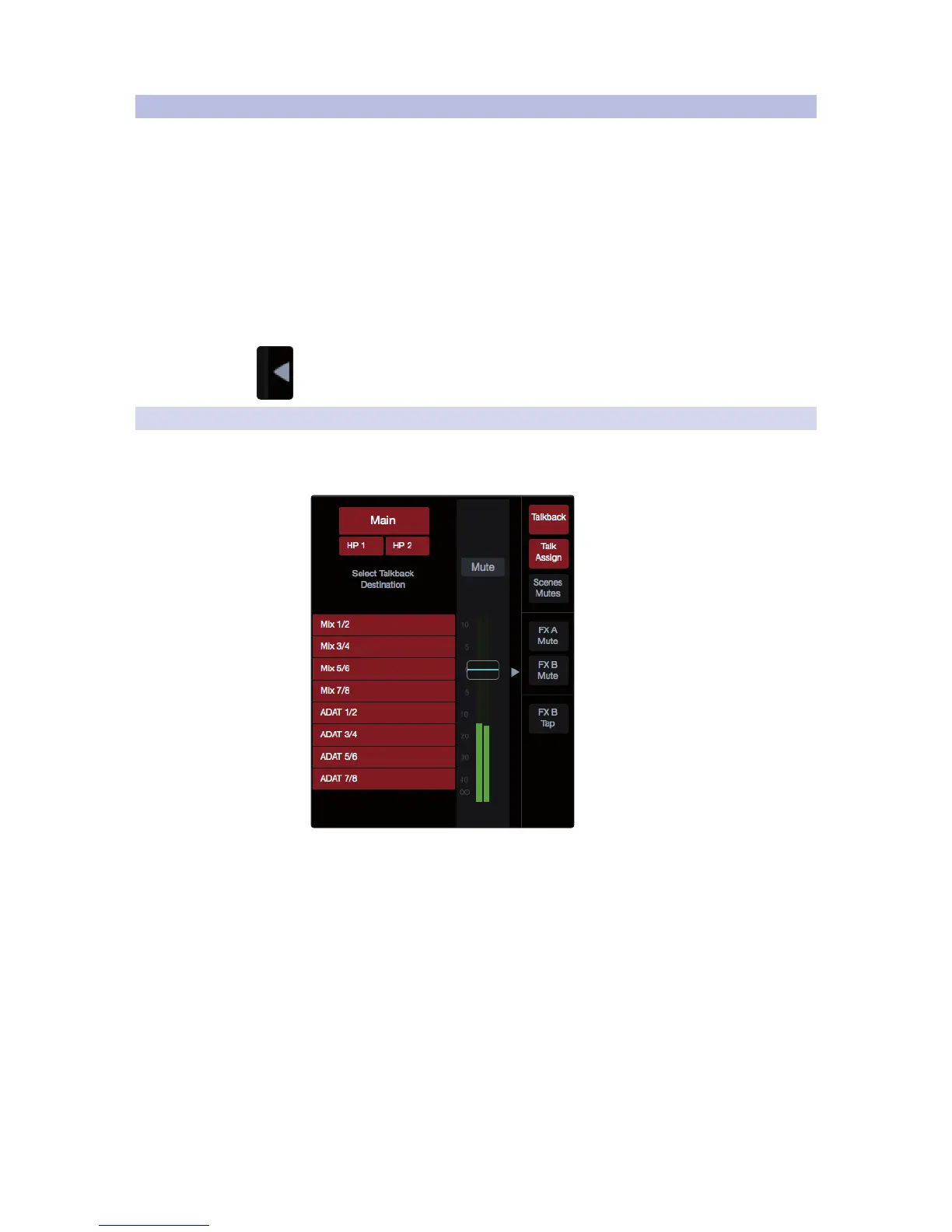 Note: Talkback must be enabled for the mix and have its Talkback fader level