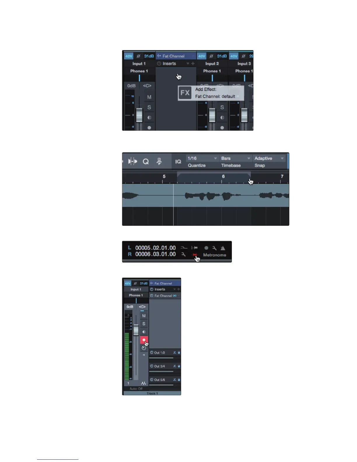 like to start and click record. Studio One will playback the recorded audio through