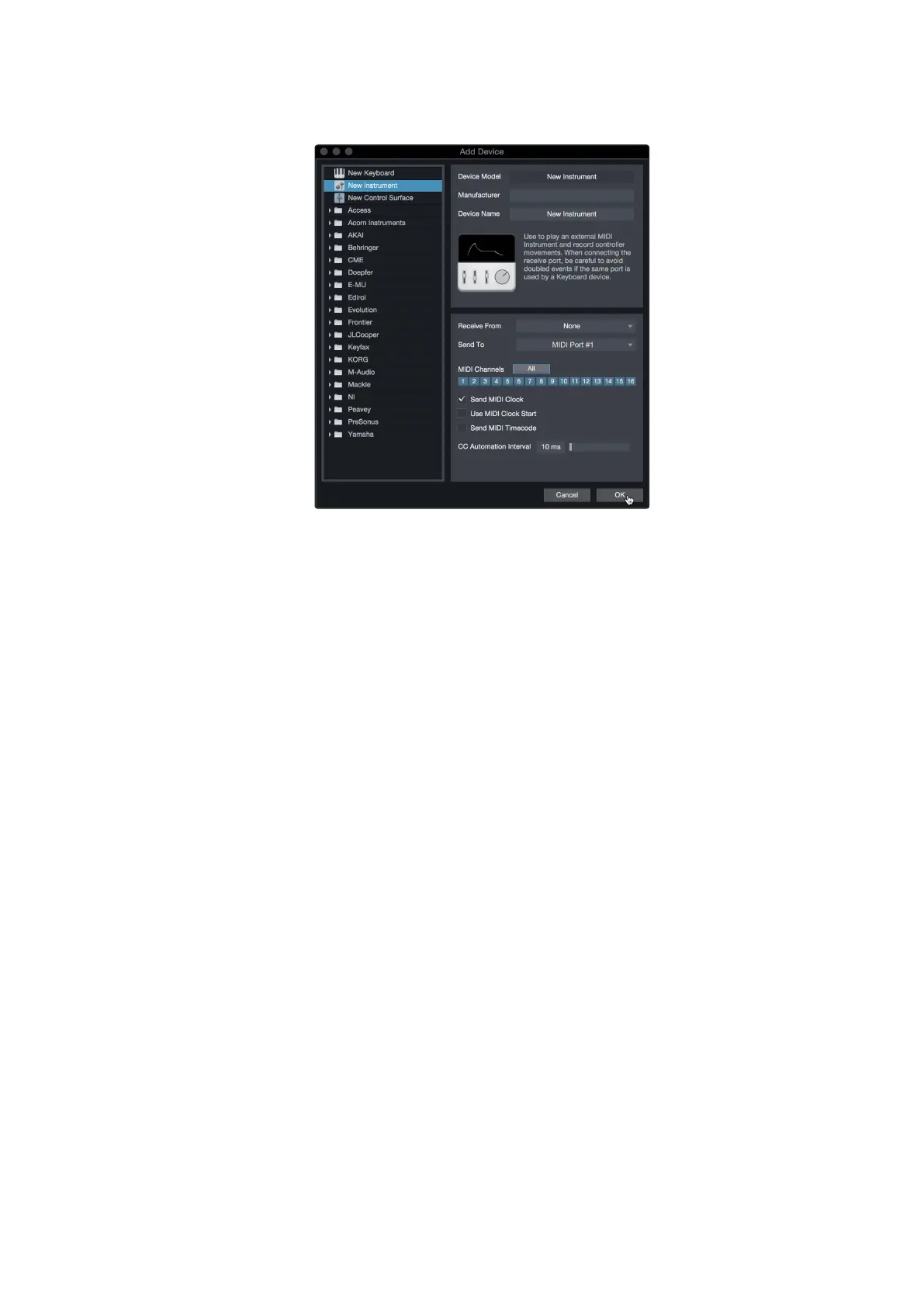 Instrument。此时,您可以通过输入制造商和设备名称来定制键盘名称