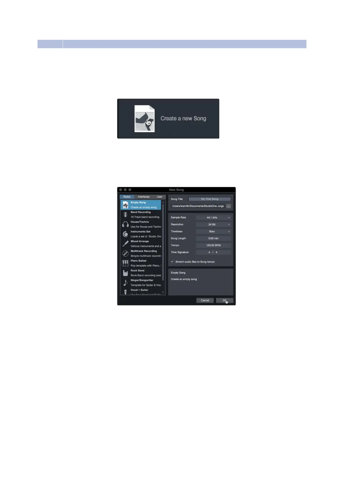 situations.The section will describe creating a Song from an empty session