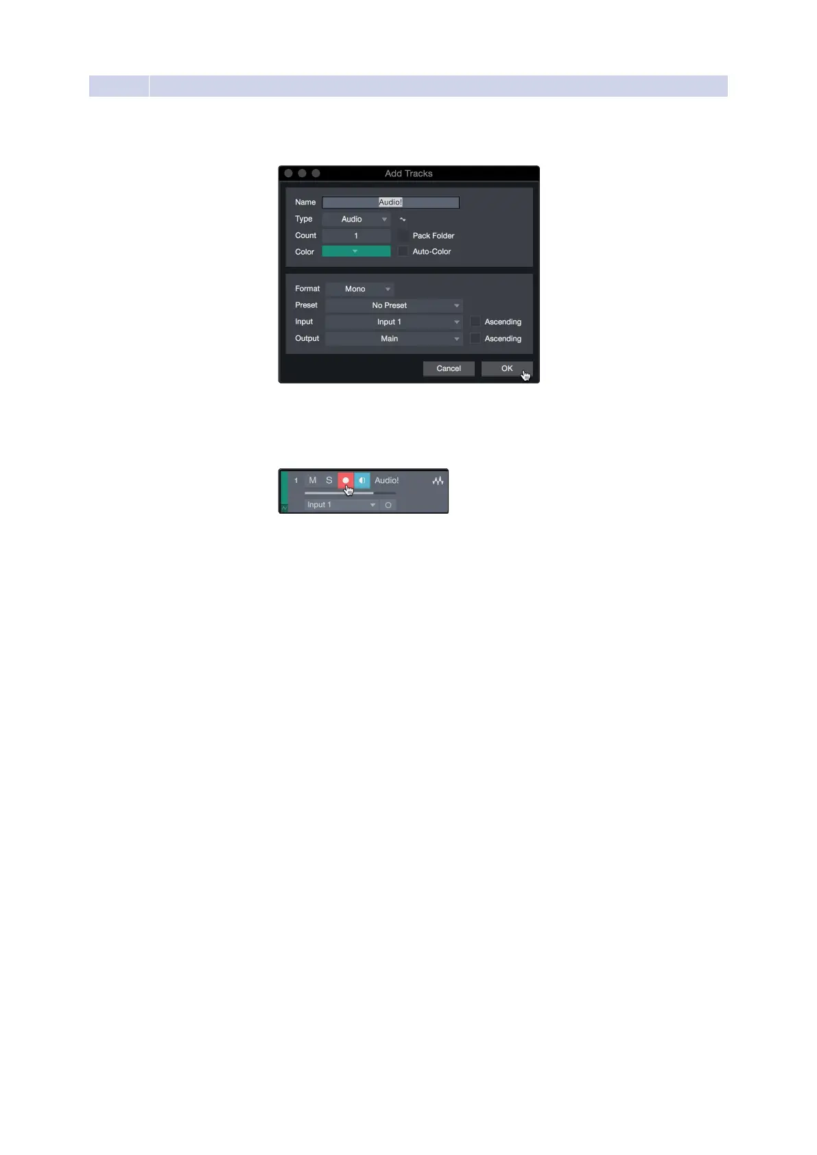1.要开始录制,请从“添加音轨”窗口创建一个音轨,将其输入设置为Studio