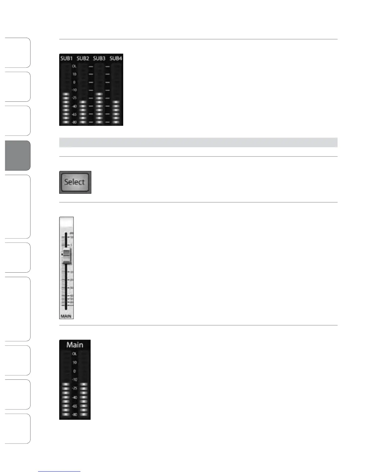 The fader controls the overall level of the main stereo and mono outputs.
