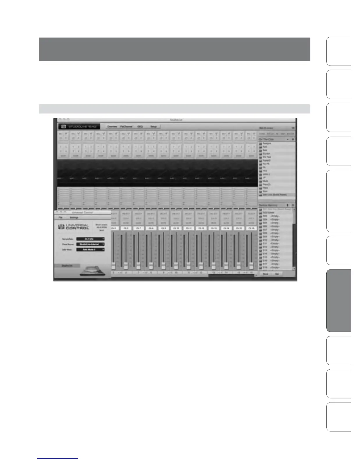 For the StudioLive, the Device window is the Virtual StudioLive (VSL)