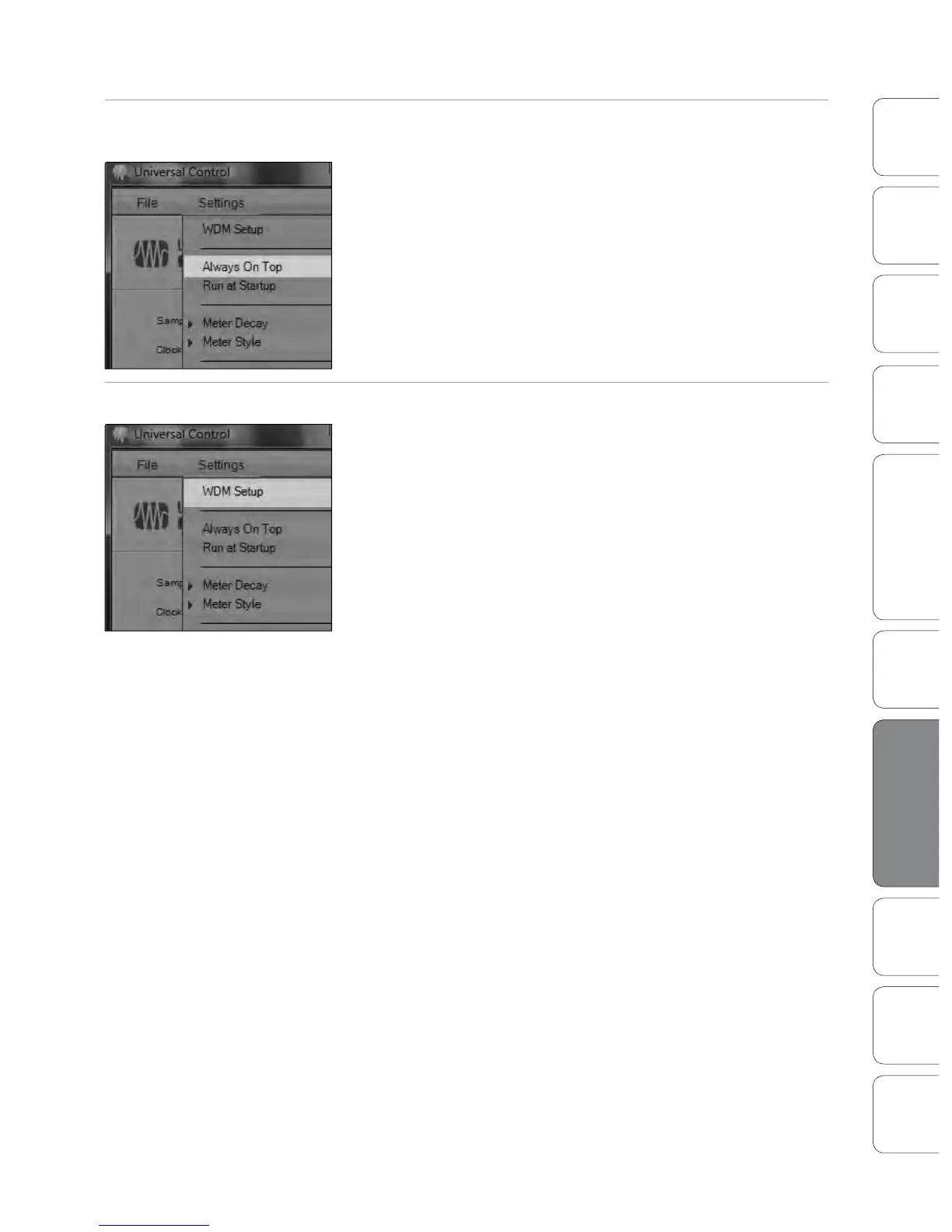 Settings: WDM Setup Opens the WDM Channel Mapper. (Windows Only)