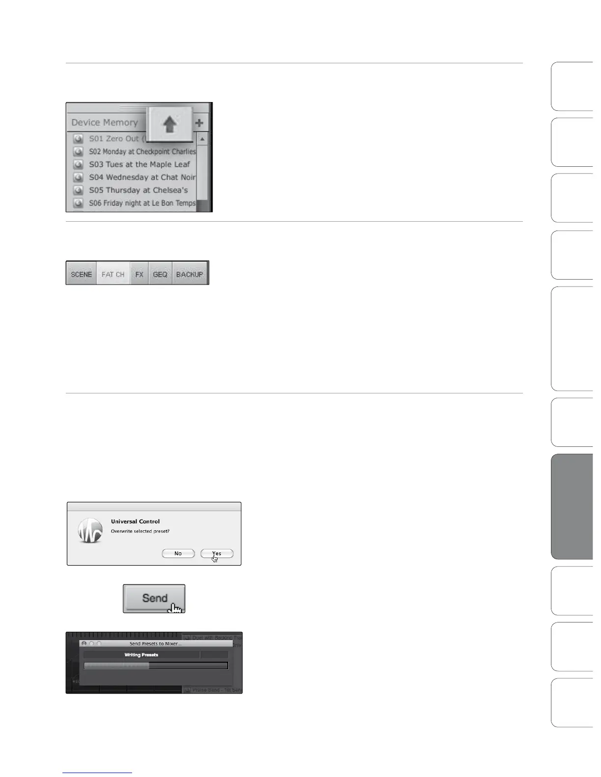 Send Button Transfers Designated Scenes, Fat Channel, FX, and Graphic EQ Presets