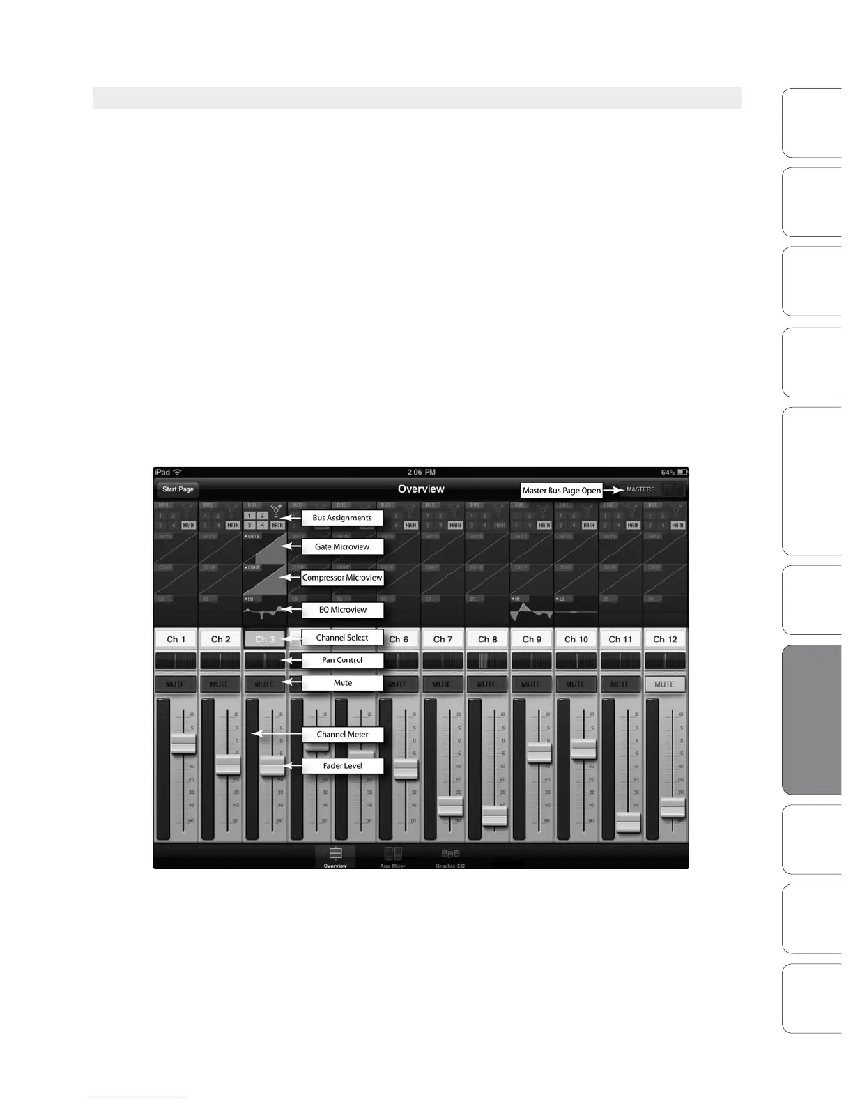 The Overview page in StudioLive Remote corresponds directly with