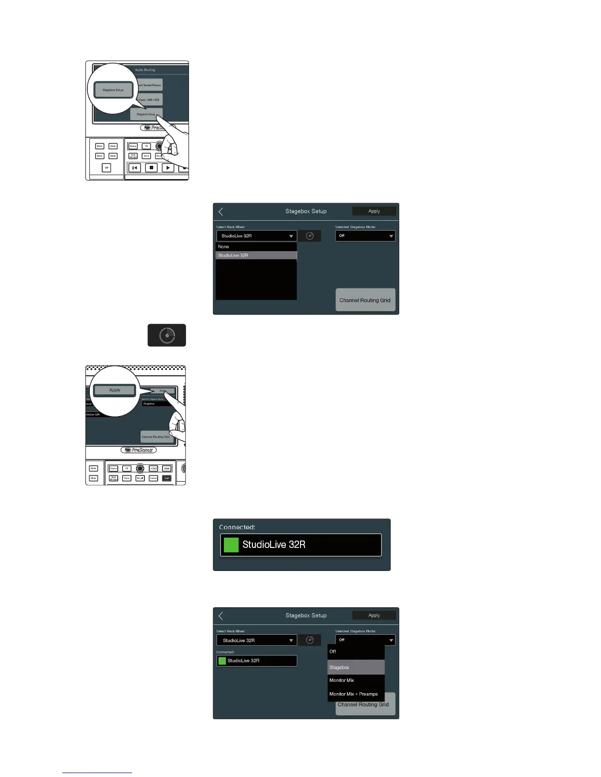 3. Press the Stagebox Setup button on the screen.