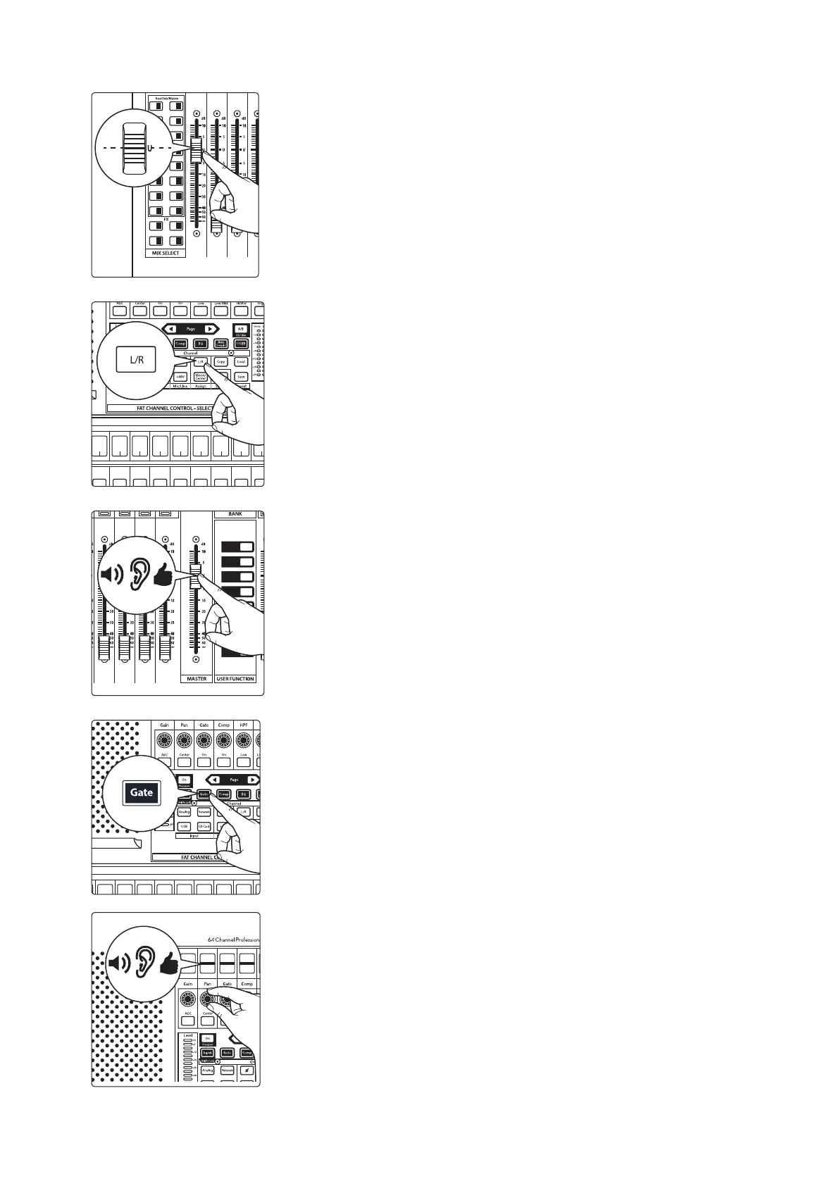 13. Raise the Channel 1 fader to its “U” setting (unity gain).