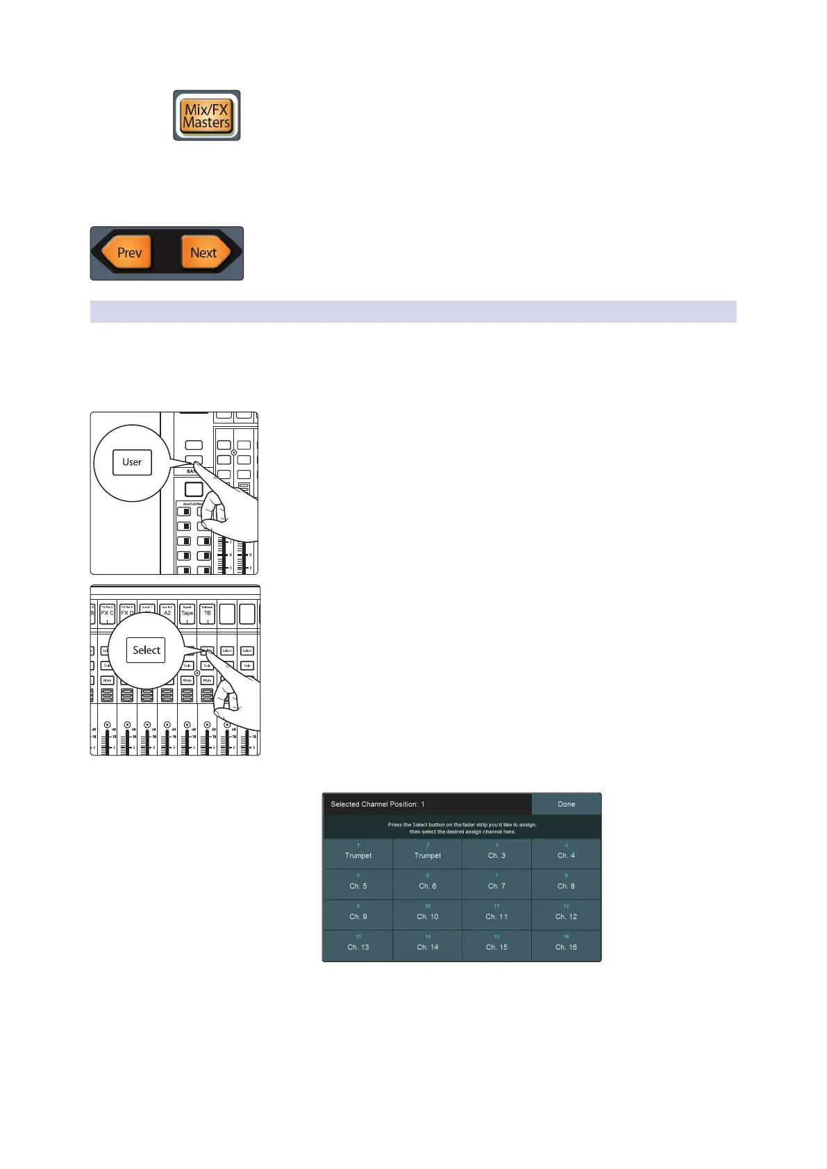 2. Press Select on a channel strip to which you wish to assign a mixer channel