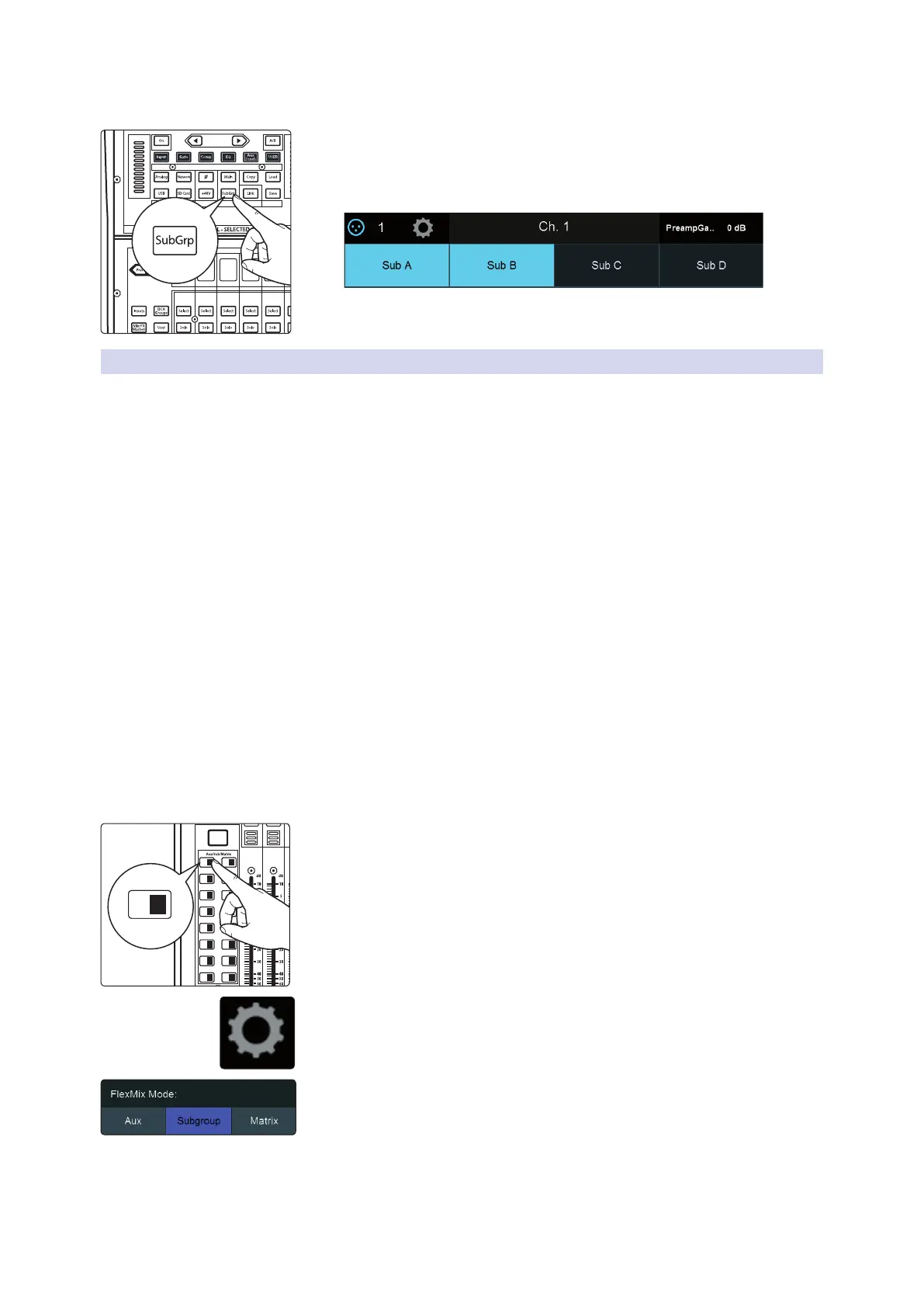 1. Press the Mix 1 Select button. This will also automatically enable the Select
