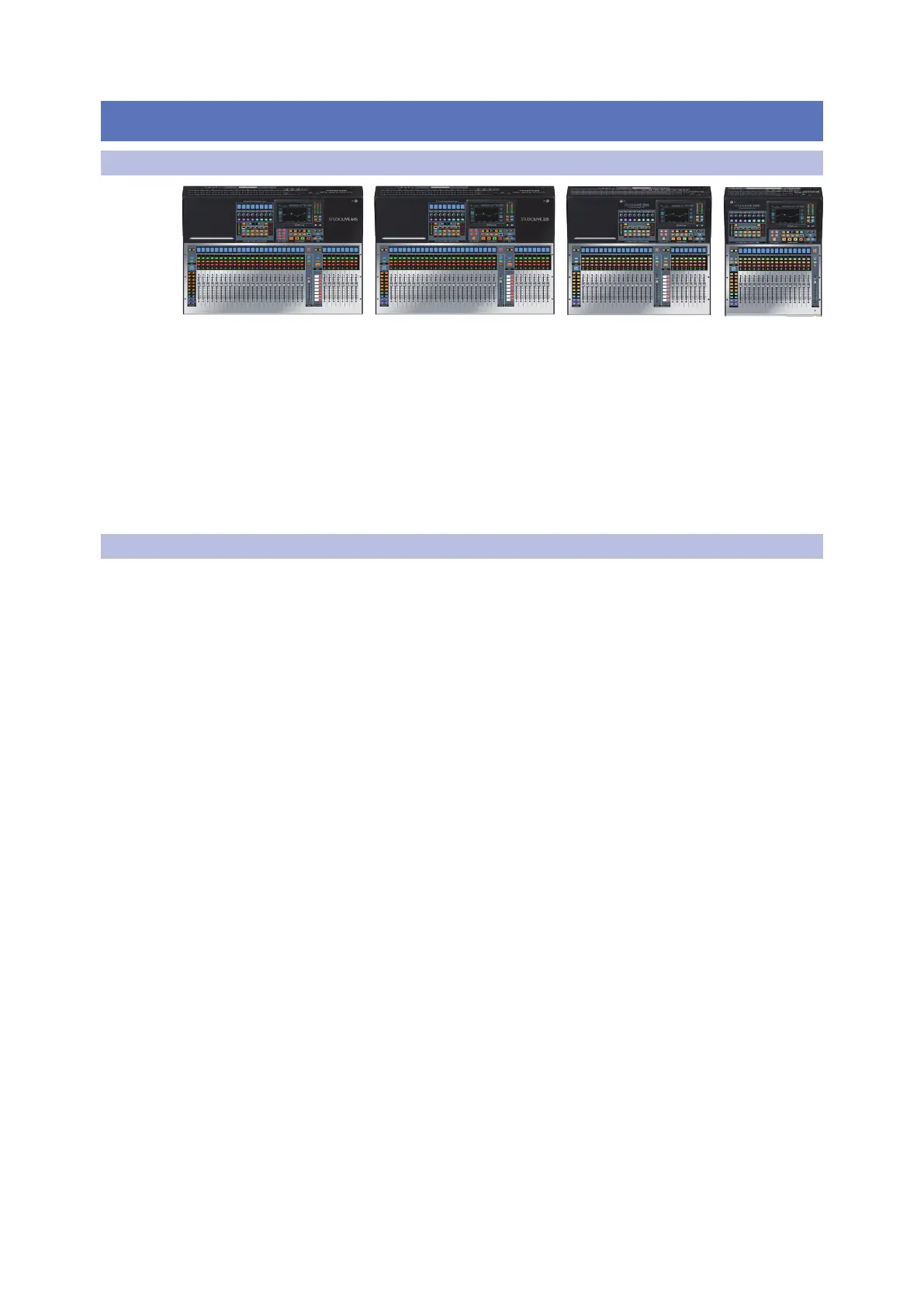 All models, except the StudioLive 64S, are 32-channel mixers and will be referred to