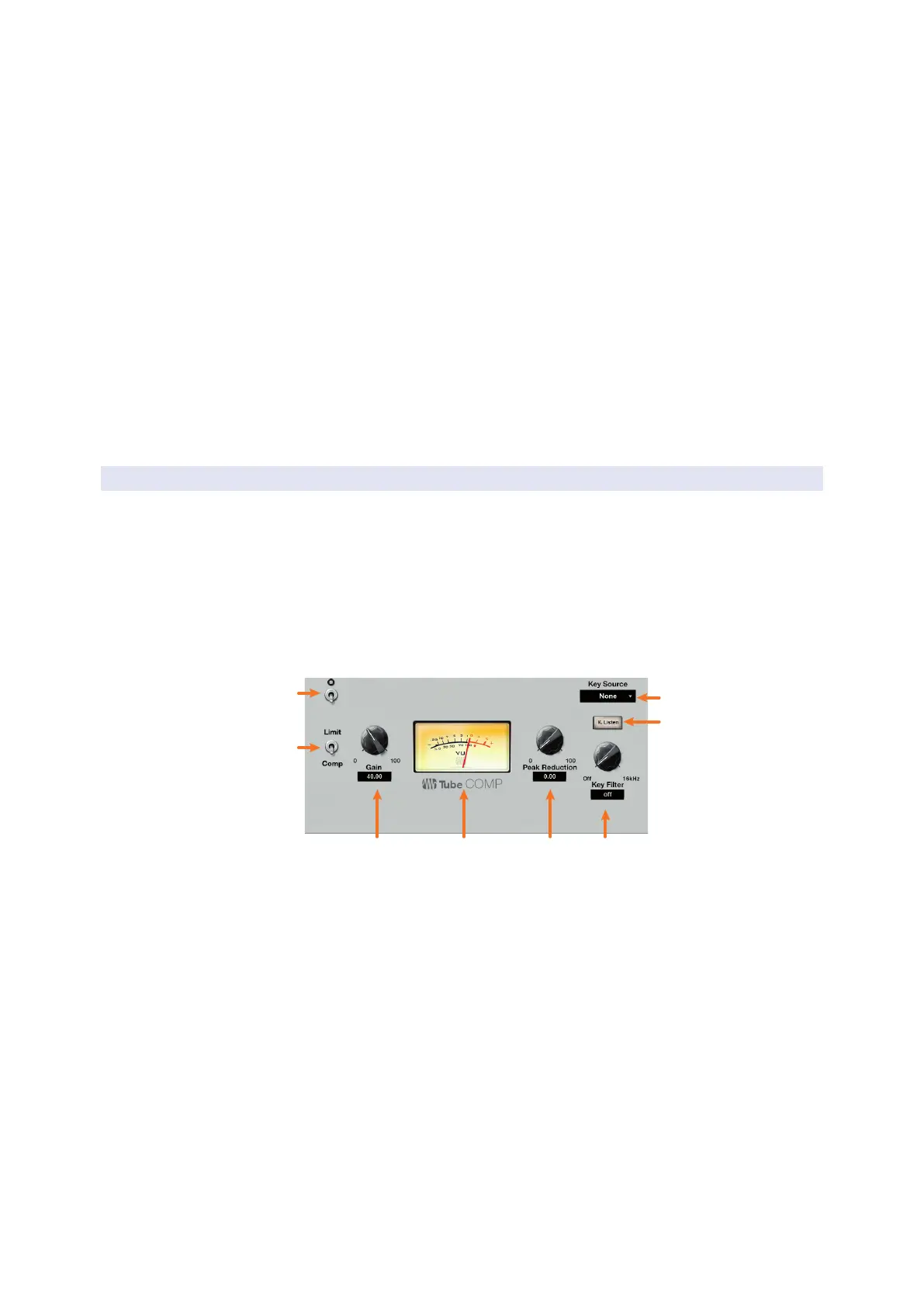 2. Comp / Limiter. Switches between the compressor and limiter modes.