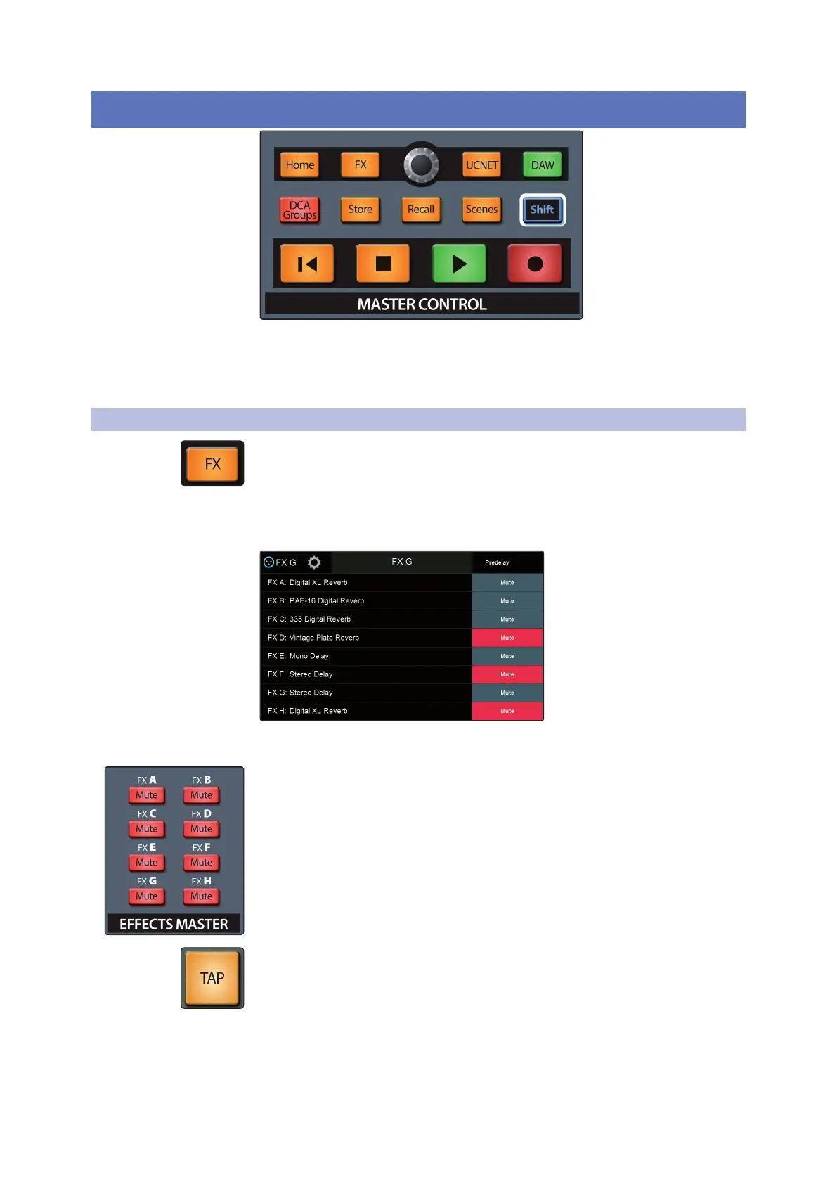 Each of the effects processors is also equipped with a physical mute button in the