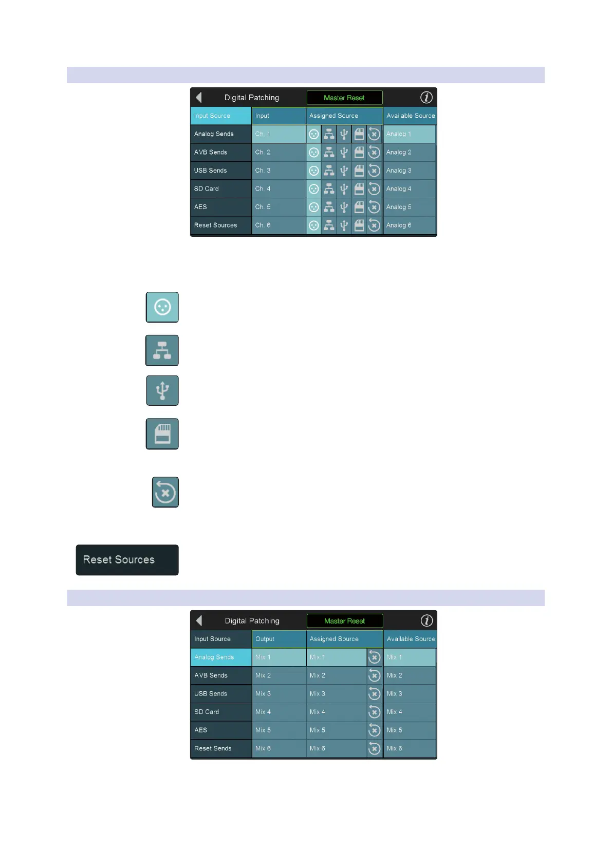 Selecting the Input Source menu will allow you to patch any source to any channel.