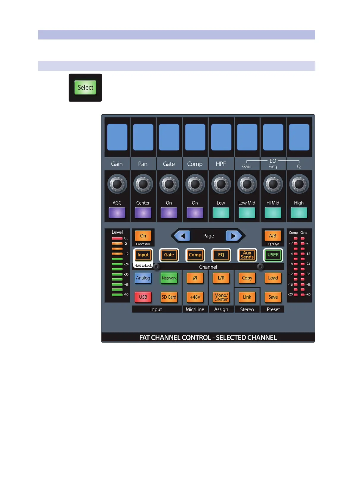 All around the StudioLive, you will see Select buttons. There is a Select button on
