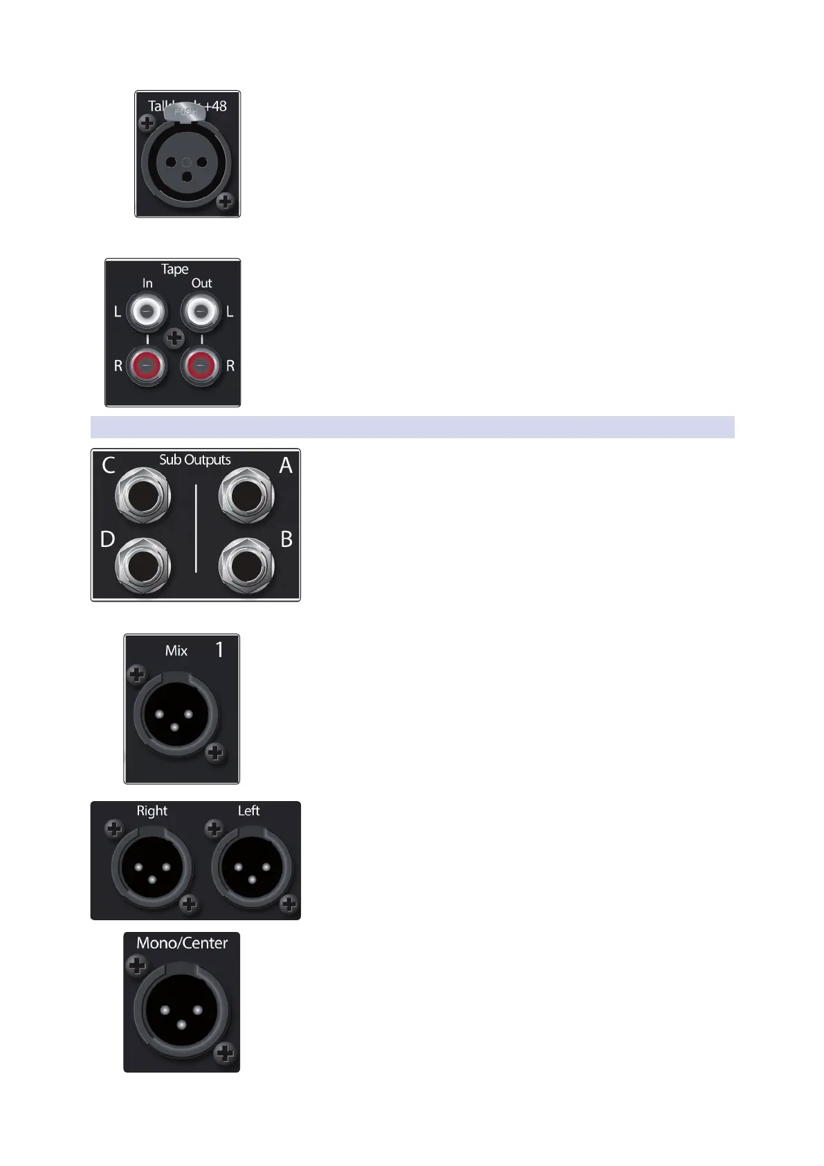 only). These are balanced mono outputs, one for each subgroup.