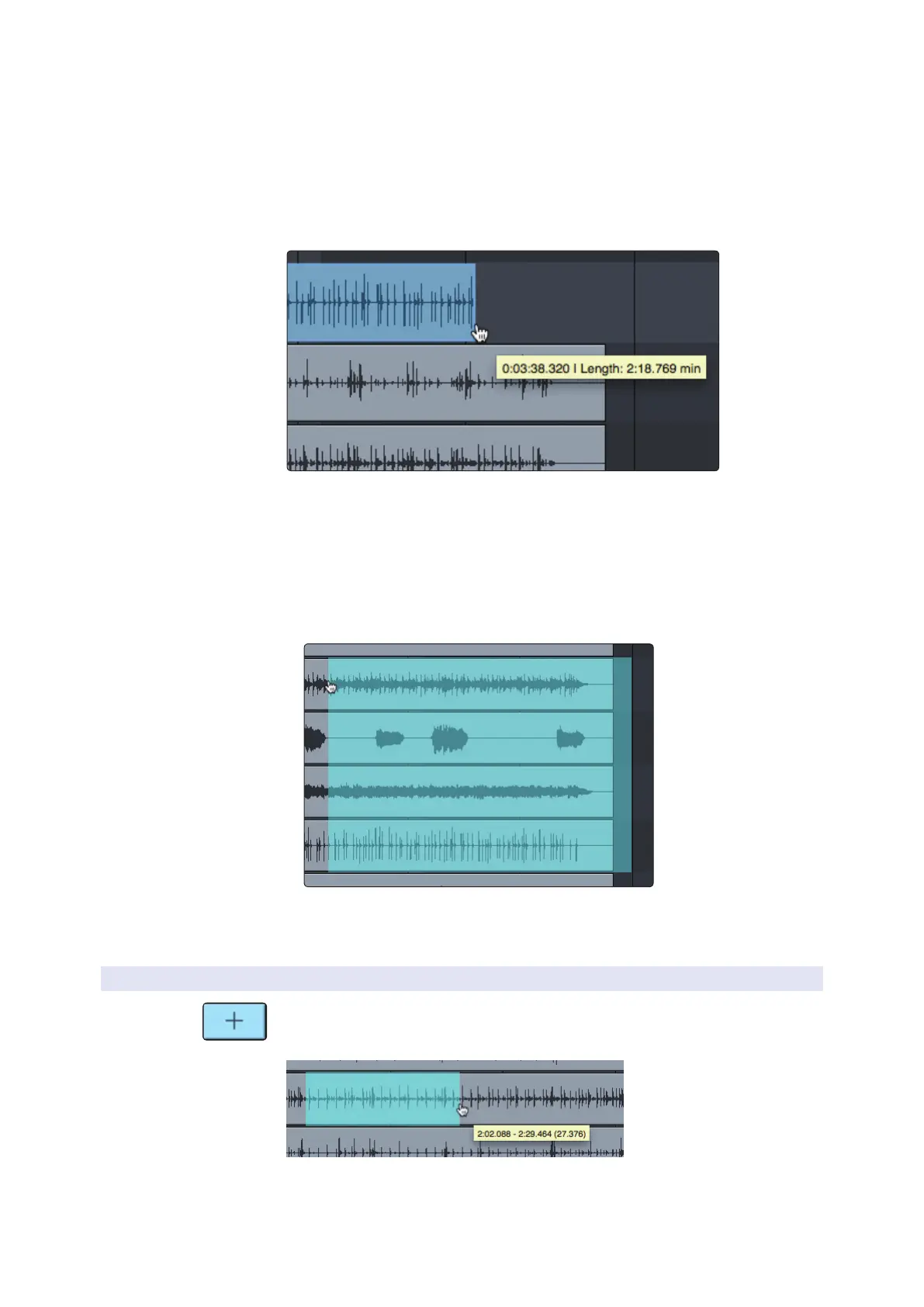 To select a range within an event, using the Range tool, click-and-drag over the area