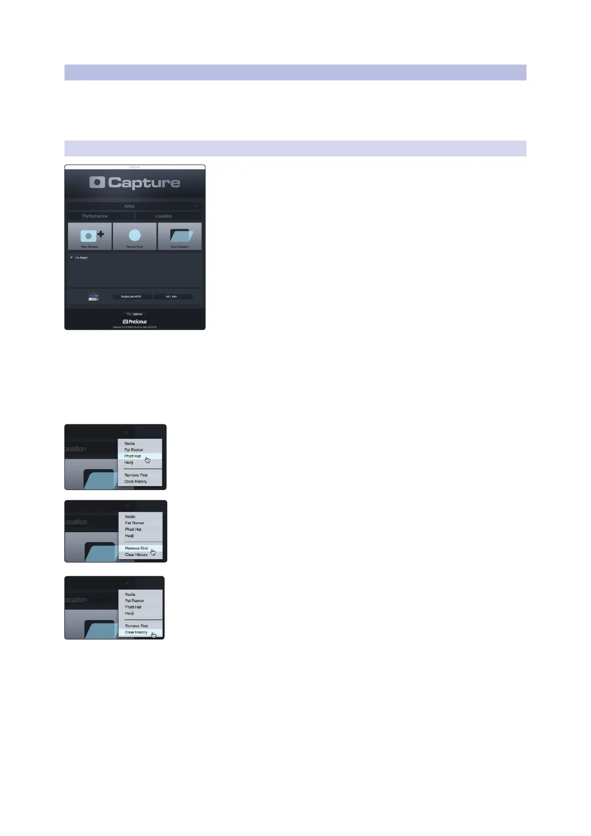 As you archive your performances, Capture 2 stores a history of the names you have