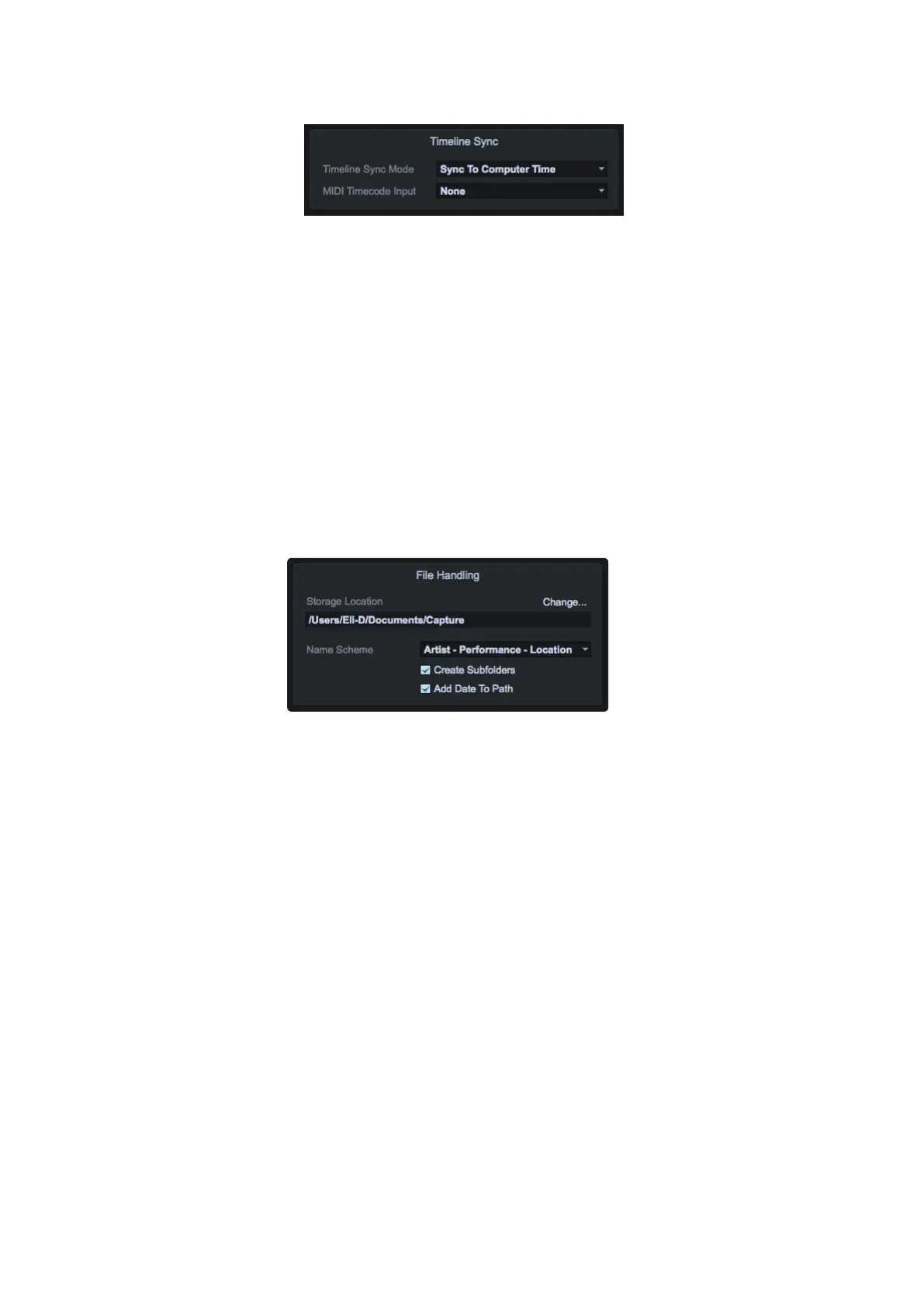 • Storage Location. By default, all Capture Sessions are stored in the