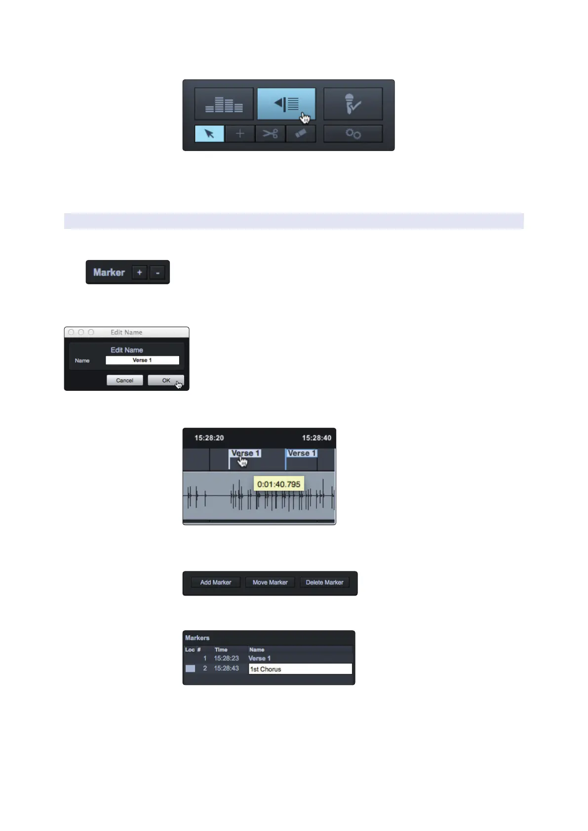 Remove Marker buttons. To insert a new marker into the Marker Lane, with playback