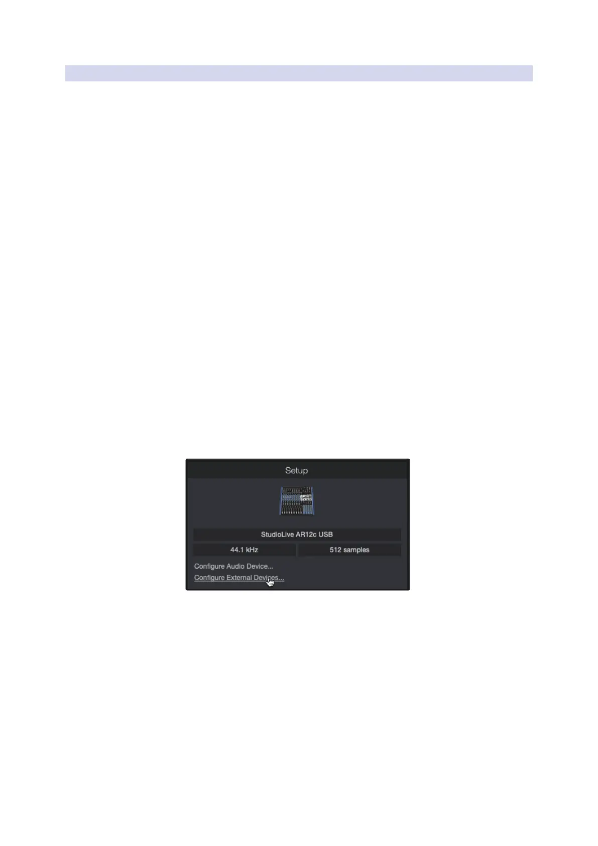 From the External Devices window in Studio One Artist, you can configure