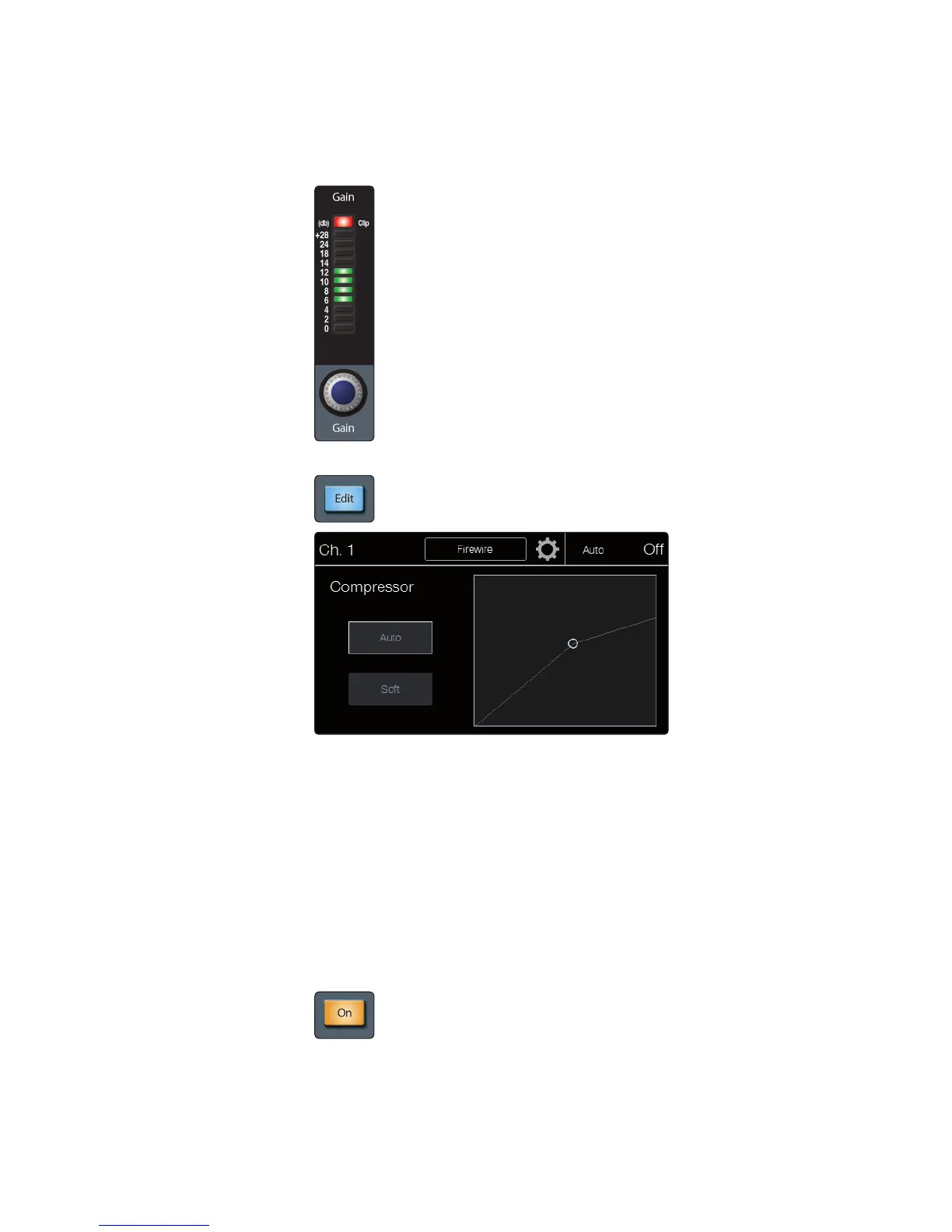 You can adjust Compressor Gain from 0 dB (no gain adjustment) to +28 dB.
