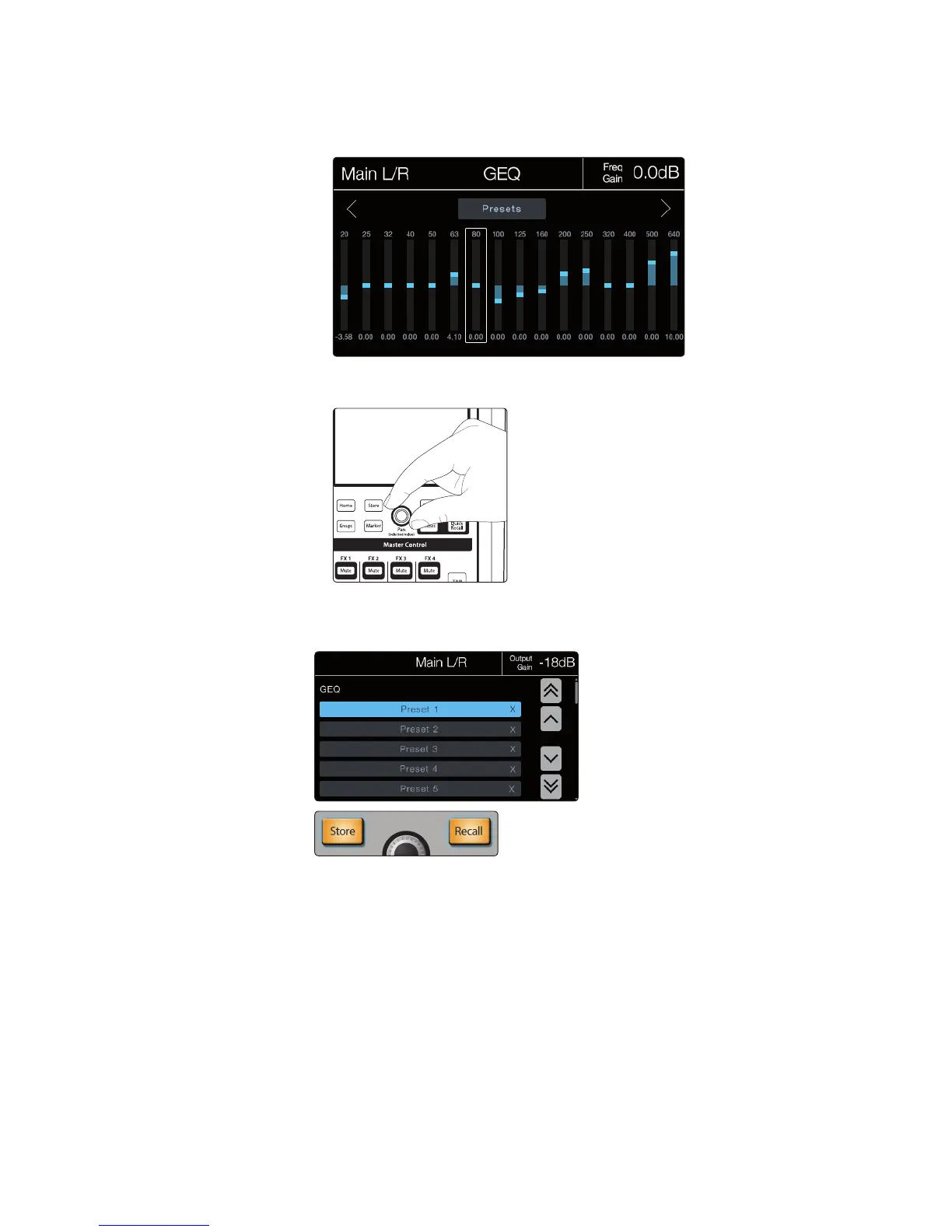 Pressing the Presets button in the touchscreen will bring up the GEQ Presets