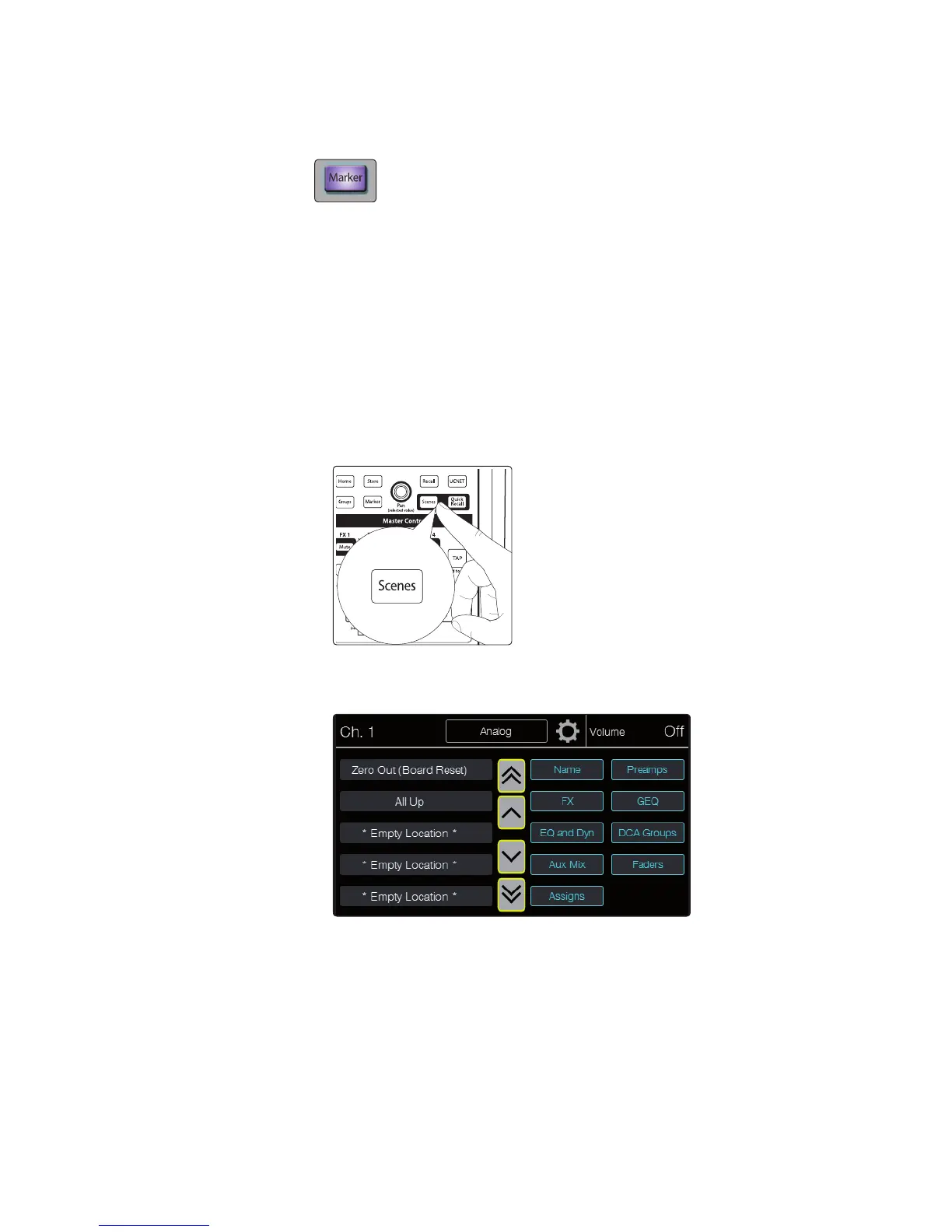 2. Press the Scenes button in the Master Control area. The