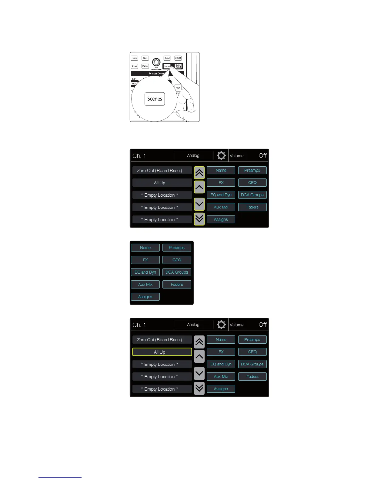 5. Touch the location from which you want to recall a mix scene. The scene is loaded.