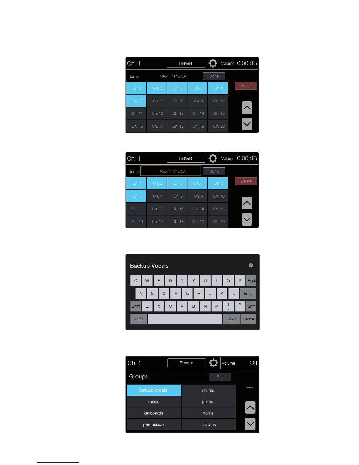 field. The text entry screen opens for you to name the group.