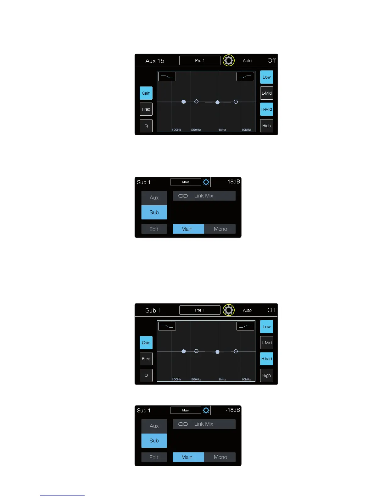 5. Press the Sub button on this screen to change the linked Aux Mixes