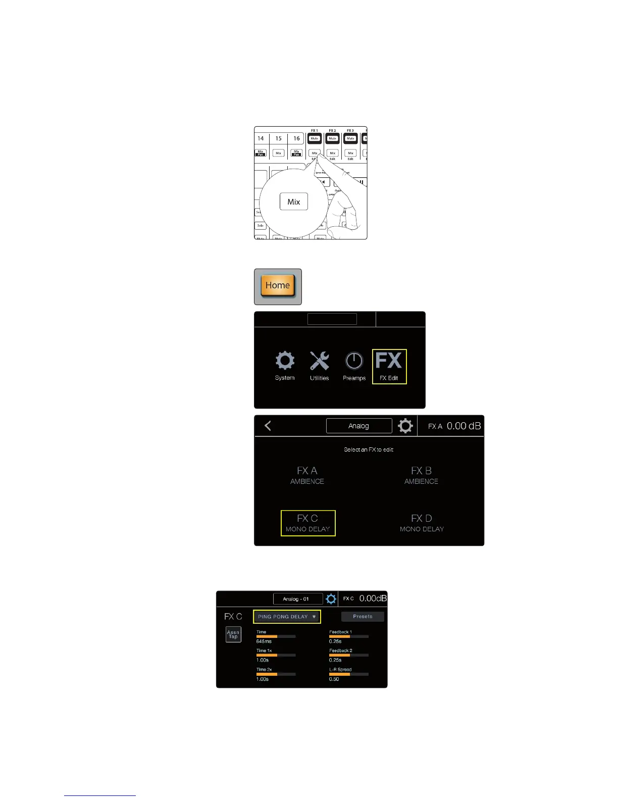 b. From the Home screen, press FX Edit and then press the button for the