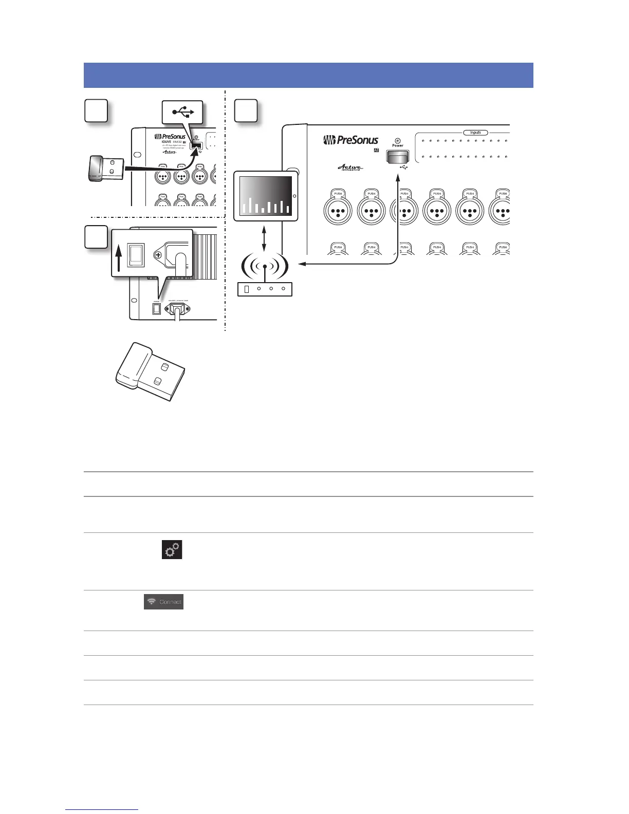 connection, and the USB Wi-Fi dongle is plugged in, the mixer will look for this