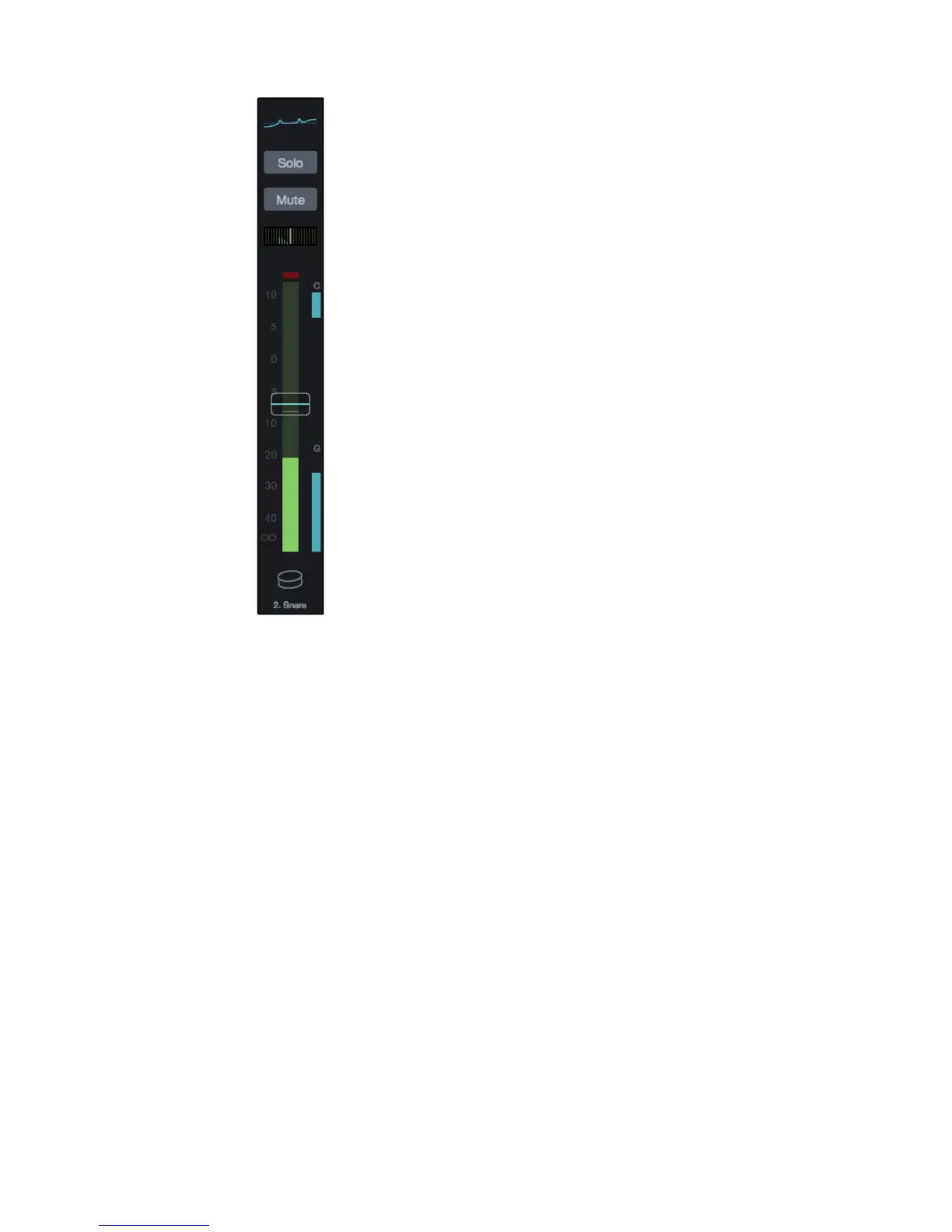 Fader. The fader adjusts the signal level for the channel.