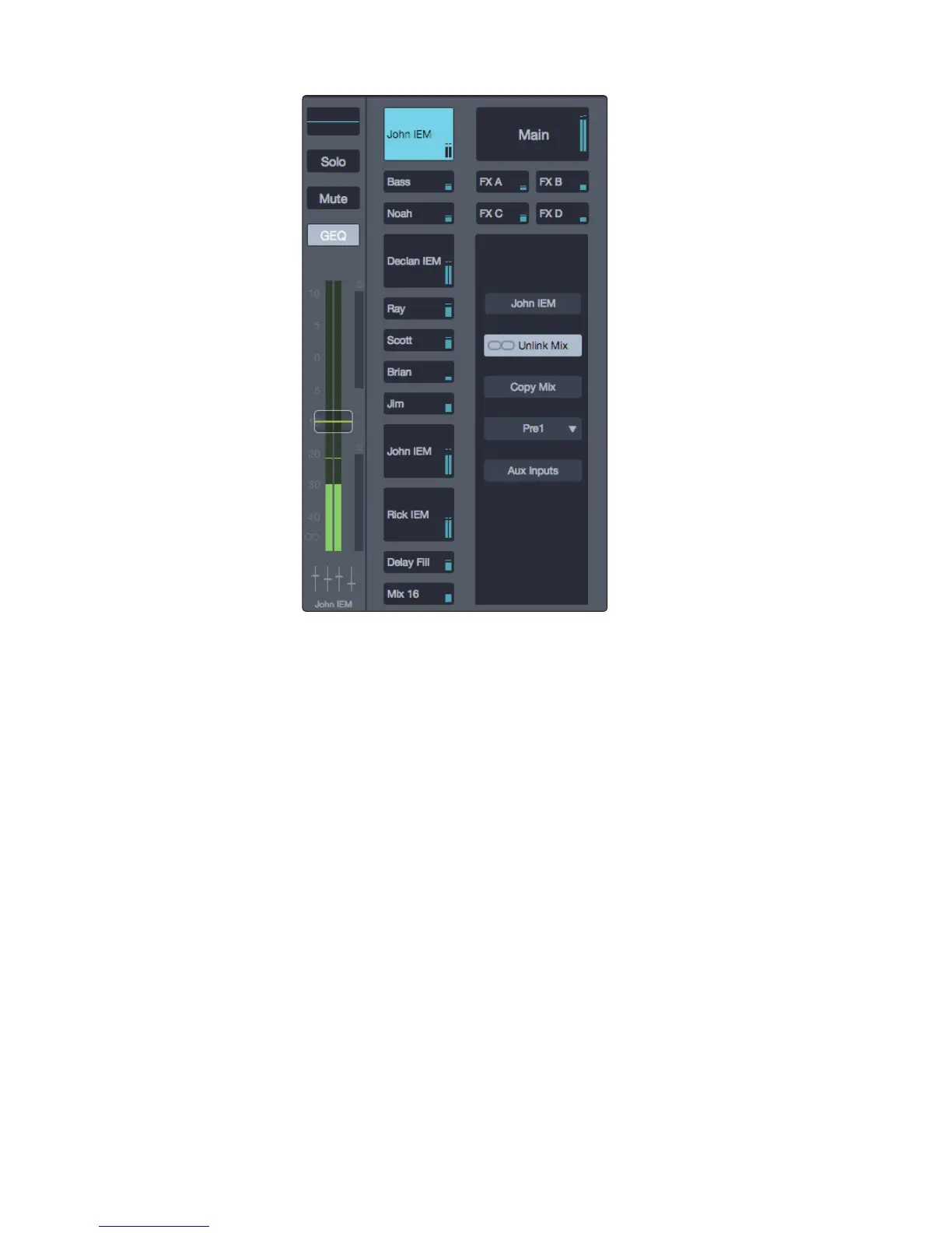 controlled by the channel faders. This is also where you’ll find the Mix Settings