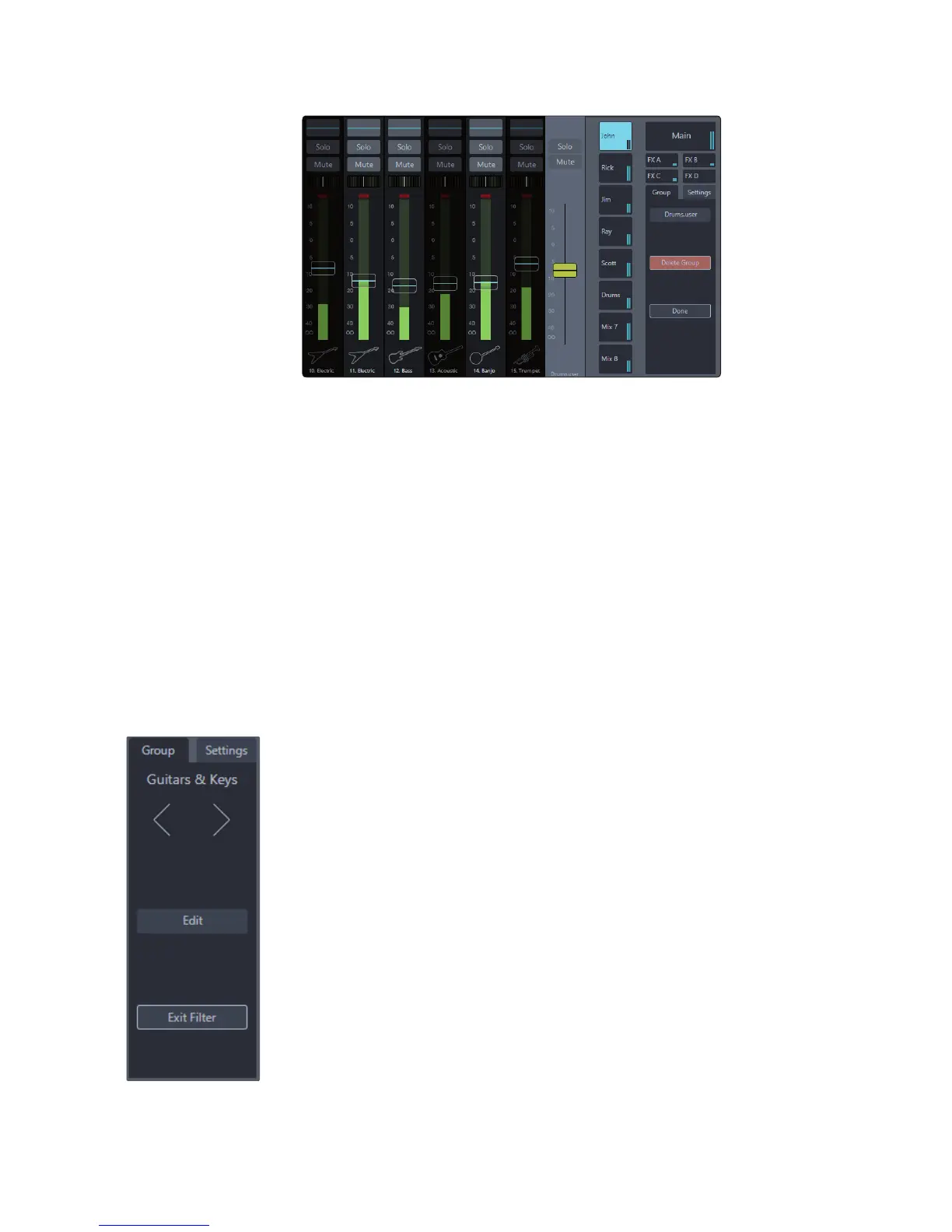 belong to the selected group will be seen in the Mix view.